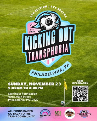 Founded in Philadelphia in 2020, Kicking out transphobia has grown from a local charity tournament into an international community project with events in Mexico and United States, creating safe, inclusive spaces where trans athletes and allies thrive through sport while raising vital funds to support the trans community, over those 5 years we have donated over $30,000. This November, after Trans Awareness week, we return for our 6th. annual tournament - a grassroots event where sports, community, and activism come together.